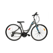 The AVP HC2000 Aluminium Hybrid Low-Step is a comfortable, versatile hybrid bike designed for commuting, leisure rides, cycling paths, and family outings. Its lightweight aluminum step-through frame makes mounting and dismounting effortless, while the 21-speed Shimano drivetrain allows for smooth riding across varied terrain. A front suspension seatpost adds comfort, and reliable Tektro V-brakes with double-wall alloy wheels ensure safe, controlled stopping.