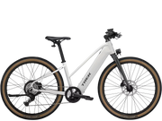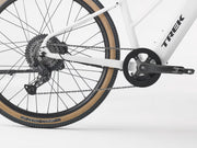 Caractéristiques du produit : • Cadre en aluminium Alpha Gold avec batterie intégrée et câblerie interne propre • Moteur de moyeu Class 2 offrant 60 Nm de couple et 500W pour des accélérations fluides • Batterie intégrée de 520Wh compatible avec le chargeur magnétique EasyMag • Transmission Shimano à 8 vitesses avec cassette 11–45t adaptée aux trajets urbains • Freins à disque hydrauliques avec rotors de 180mm pour un freinage constant et sécuritaire • Pneus Bontrager 650x50mm pour confort, stabilité et adhérence sur l’asphalte et les pistes • Éclairage avant et arrière intégré, incluant clignotants et feu de freinage • Supports pour porte‑bagages et garde‑boue, plus béquille arrière pour un usage quotidien